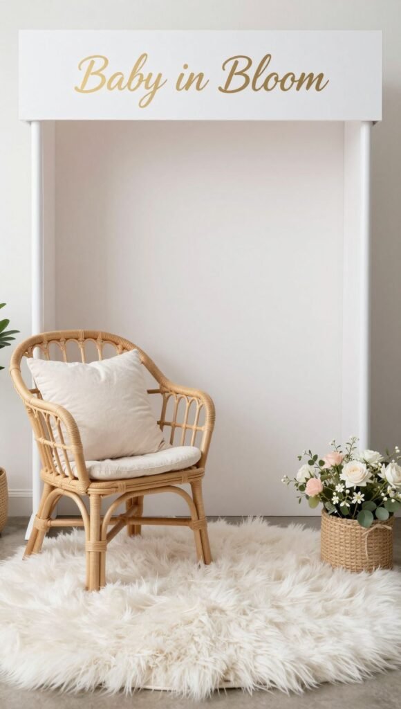 Pro tip: Don’t forget the props! A basket filled with flower crowns, tiny baby booties, or even a cute “bump ahead” sign will elevate the photo ops. This dedicated spot means guests can snap adorable pics without awkwardly photobombing the cake table.