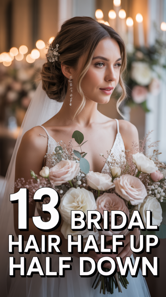 Alright, future Mrs.! You’re tying the knot, and let’s be real, the dress is epic, but your hair? That’s the crown jewel. You want that perfect mix of “I woke up like this” effortless chic and “I’m about to say ‘I do'” glam, right? Enter the half up half down hairstyle โ the ultimate bridal chameleon. It frames your face beautifully, keeps those pesky strands out of your eyes during the emotional bits, and still lets you show off those gorgeous lengths. Plus, itโs basically the VIP pass to looking stunning from every single angle. Weโre diving into 13 looks that are anything but basic.