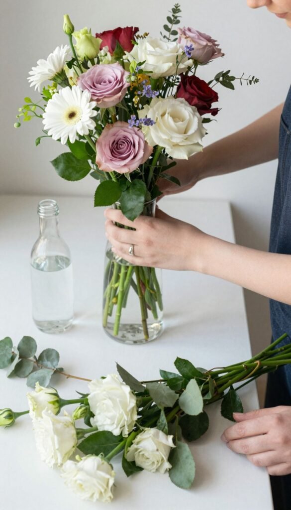 Before the guests arrive, do a little prep work. Unpack and give your flowers a fresh cut and a drink of water. Remove any leaves below the waterline to prevent bacterial growth. This ensures your blooms are looking their absolute best and last longer, impressing even the pickiest bouquet builder. A little pre-party pampering goes a long way.