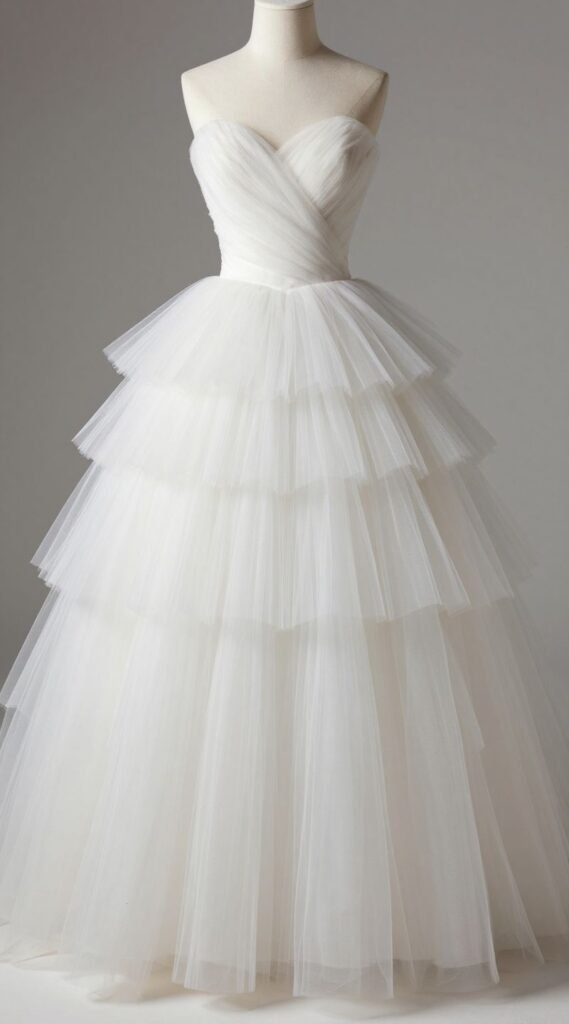Want to feel a bit whimsical and grand? A tiered tulle dress delivers exactly that. Layers of airy tulle create a dreamy, romantic silhouette that is utterly captivating and fun.