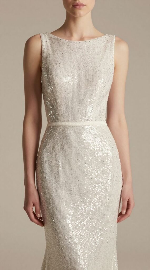 If the wedding vibe is strictly party-on-the-dance-floor, a sequin shift dress is your go-to. It is fun, festive, and designed for celebration. Just ensure the sequins are tastefully done.