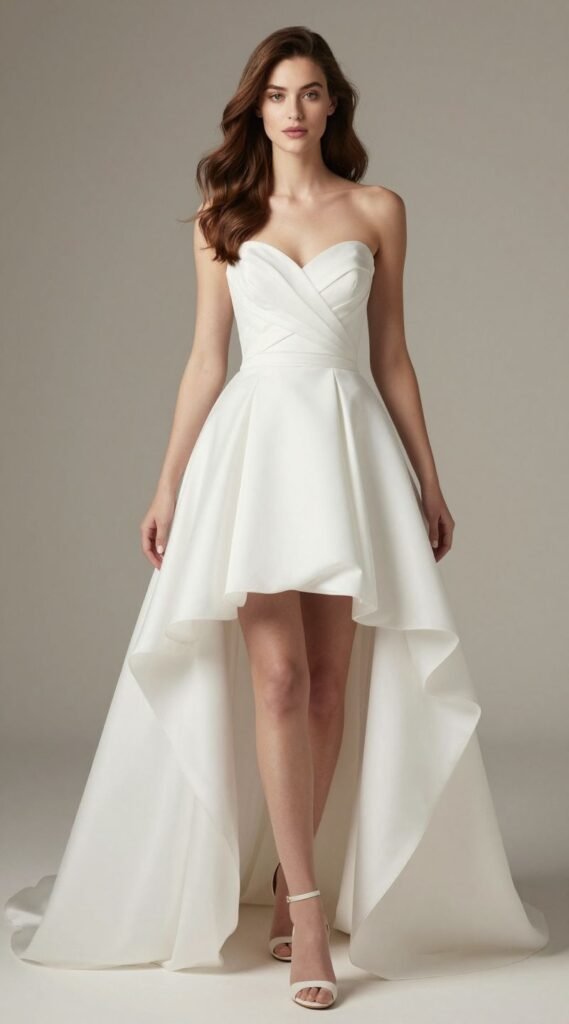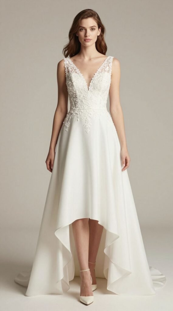 Can’t decide between a short dress and a long one? The high-low hem dress offers the best of both worlds. It provides the formality of a longer gown in the back with the playful ease of a shorter hem in the front.