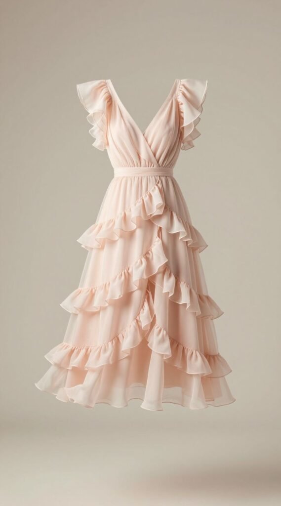Want to feel like you’re floating on air while still looking put-together? Enter the chiffon ruffle midi dress. Layers of delicate ruffles add movement and a playful touch, making it incredibly flattering and fun to wear.
