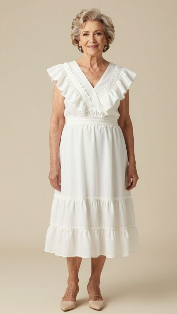 Add a touch of playful femininity with a dress featuring subtle ruffle details. This could be ruffles on the sleeves, a tiered skirt, or a delicate neckline. Opt for ruffles that add movement and softness without adding bulk. A chiffon or lightweight crepe fabric enhances the effect.