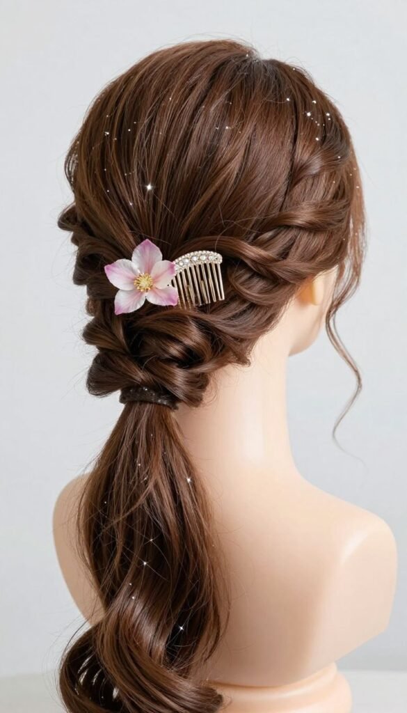 A little volume at the crown makes this extra special. Try backcombing gently at the roots before twisting for that perfect lift. It’s perfect for showing off lovely earrings while keeping the overall vibe relaxed and celebratory.