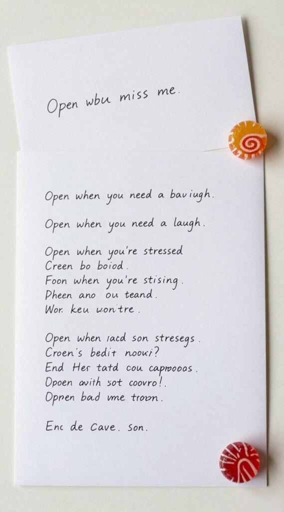 Pro Tip: Include a small, relevant item with each letter, like a piece of his favorite candy with “Open when you need a sugar rush.”