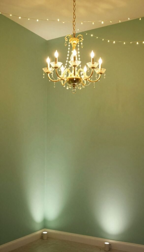 Lighting totally transforms a space, making it feel intimate and magical. Incorporate warm, golden string lights, fairy lights, or elegant chandeliers. Uplighting in a soft sage green hue can wash walls or architectural features, creating a truly immersive experience.