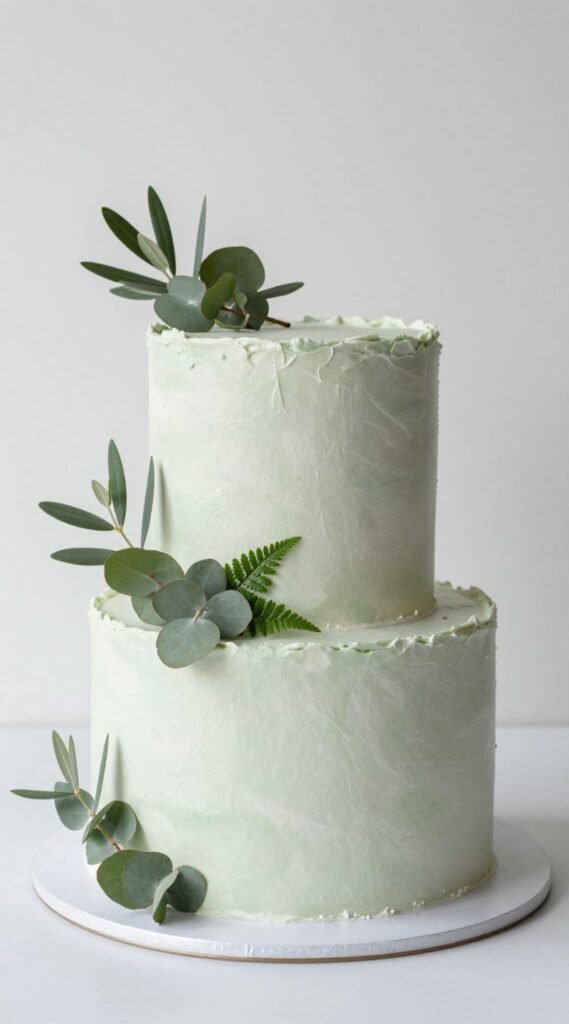 Keep the greenery to one side or a small cluster for maximum impact without overwhelming the cake. It brings a natural, sophisticated touch that feels effortlessly modern.