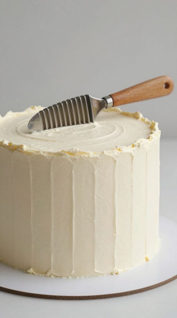A cake comb is your secret weapon for achieving those perfectly uniform lines. It’s a chic way to add detail without extra embellishments.
