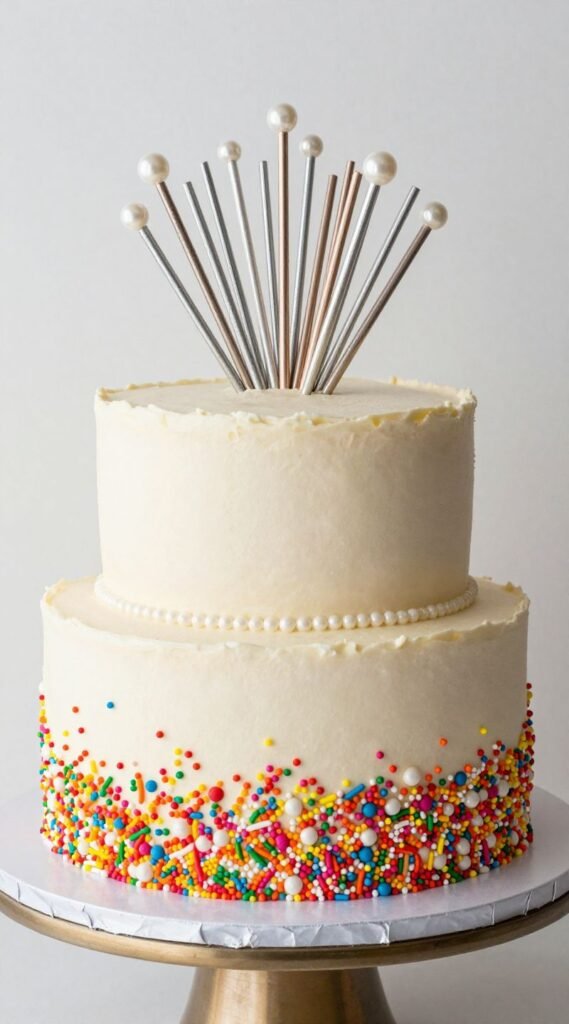 Limit the sprinkles to the bottom half or a fun “burst” on top to keep it chic, not childish. It’s playful, unexpected, and screams “we’re here to celebrate!”