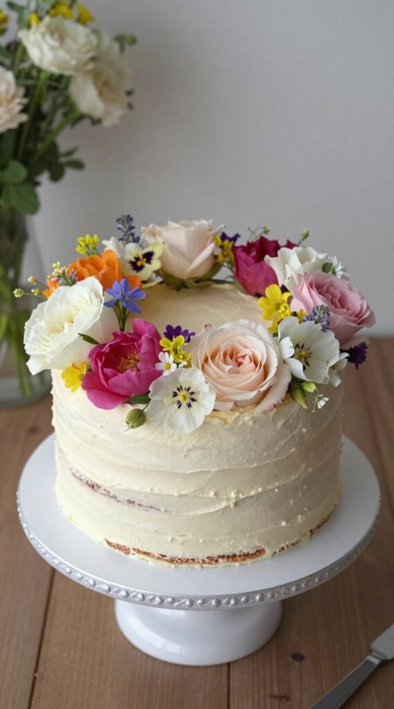 Mother Nature called, she wants her cake back. Take a simple base – buttercream, ganache, whatever – and adorn it with a stunning ring of fresh, edible flowers. Think delicate roses, lush peonies, or even charming wildflowers.