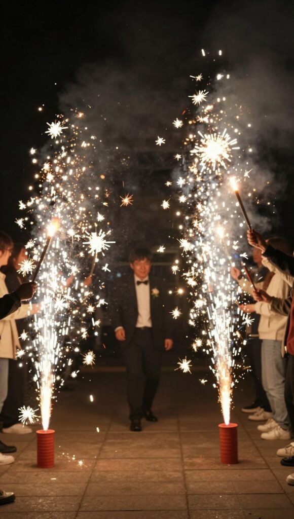 Pro tip: Always check with your venue about fire restrictions. If sparklers aren’t an option, consider glow sticks, bubbles, or even ribbon wands for a fun alternative.