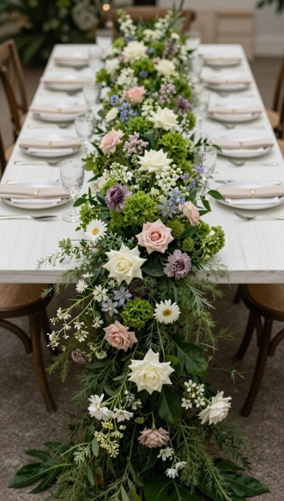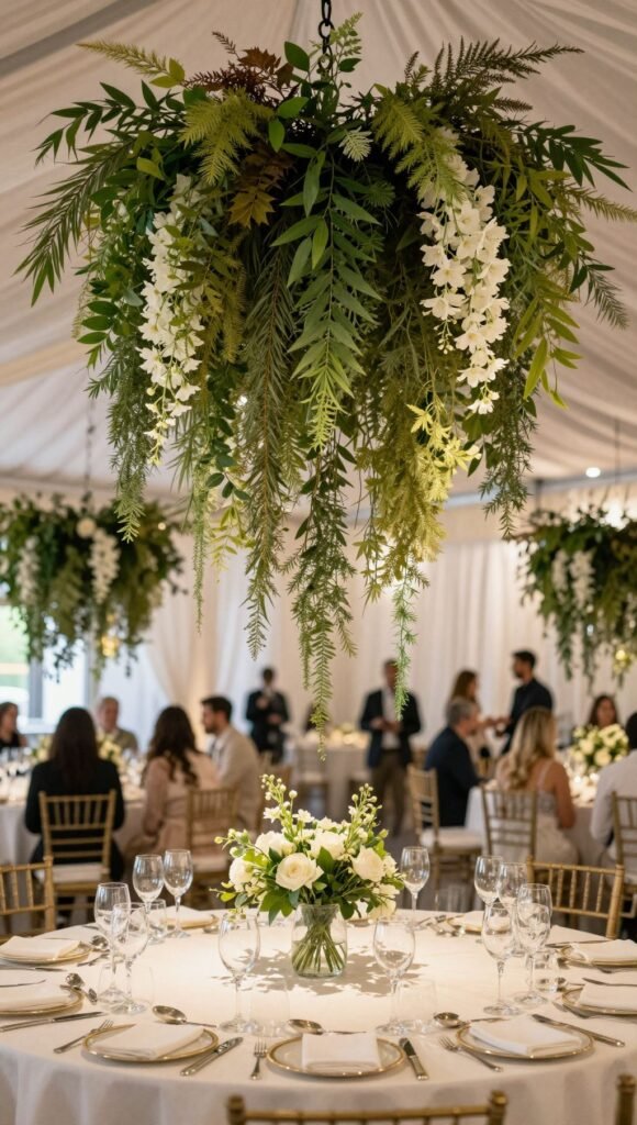 Pro tip: Discuss structural capabilities with your venue and florist well in advance. Safety first, darling. This option is a total game-changer, transforming the entire dining experience into something magical.