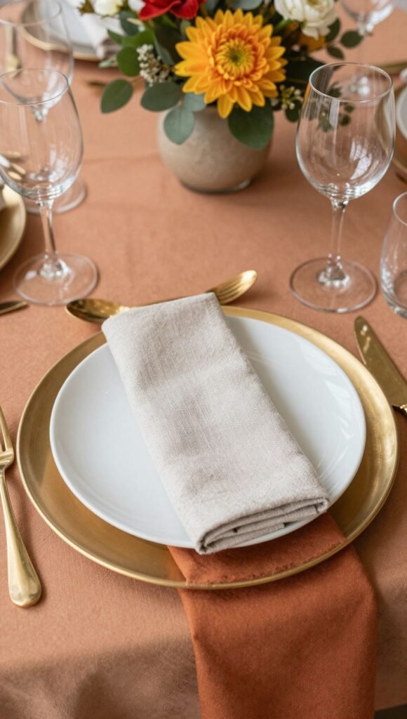 Before you even get to the centerpiece, consider your foundation. The right charger plates, tablecloths, and napkins can set the entire tone. Think textured linens, bold colors, or metallic chargers that complement your overall theme.