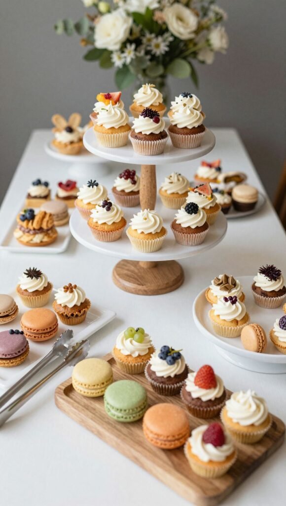 Why just look at a centerpiece when you can eat it? Create a mini dessert bar at each table, featuring beautifully arranged cupcakes, macarons, or small pastries. It’s interactive, delicious, and totally unexpected.
