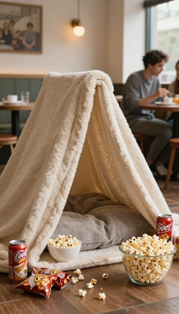 Who needs a crowded restaurant when you have a blanket fort, their favorite snacks, and a queue of rom-coms (or action flicks, if that’s their jam)? The key here is comfort and zero pressure.
